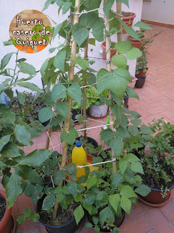 Y mirar que altas están ya las plantas de judías verdes planas a ver si pronto veo alguna judía colgando y les hago un par de fotos.